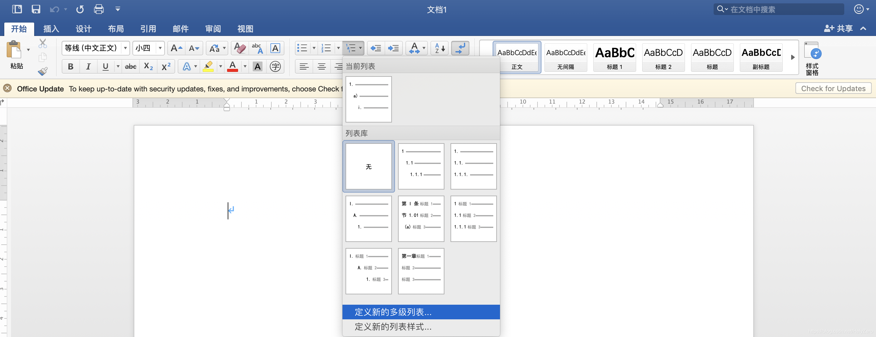 在一个新建文档中,点击顶栏中的多级列表标志,选择定义新的多级列表