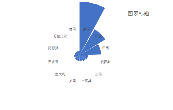 将圆环图填充为无色,并设置标签格式,最后得到如图所示的南丁格尔玫瑰图:
