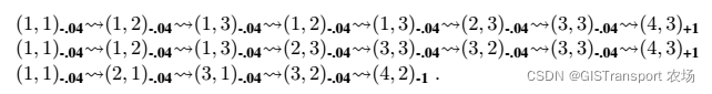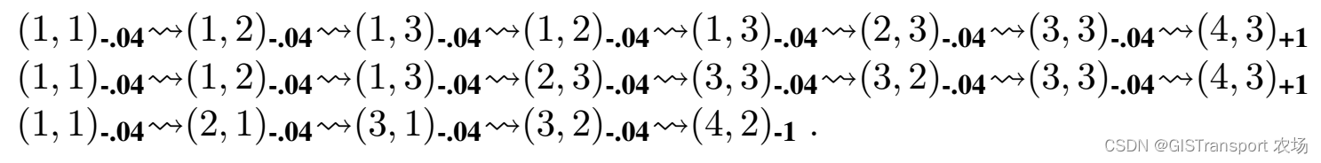 ,在第二轮中(1,3)到(2,3)之间存在转换。假设总是发生这个转换,那么我们有: