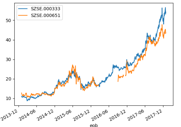 我们来看A股市场上一对被比较常见的配对股票:美的集团(000333),格力电器(000651)