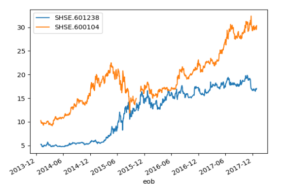 时间为2014-01-01至2018-01-01,中间有一段时间格力电器停牌,数据缺失。