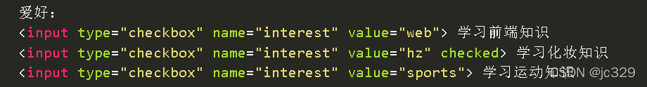 //复选框 类型为checkbook 复选框选中状态 checked