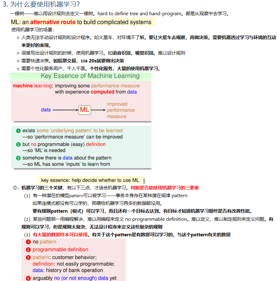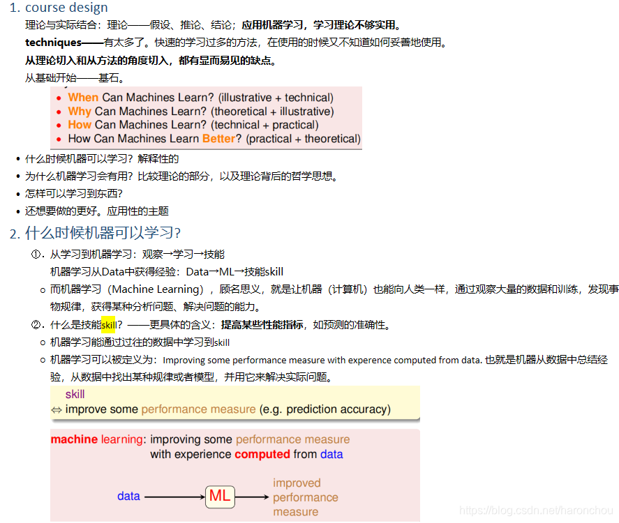 (1) 人类从观察→学习→skill;机器从数据→ML→skill (skill就是performance measure)机器学习的技能就是提高了性能指标,如预测准确性