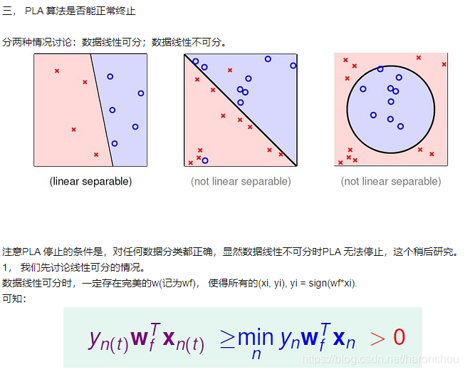 3. PLA能否正常终止?分两种情况:数据线性可分 vs 数据线性不可分