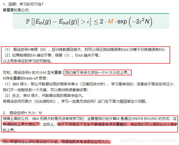 (1)M的大小至关重要。用一个有限的值mH(H)来代替M。因为假设之间有重叠,所以UnionBound估计过高。