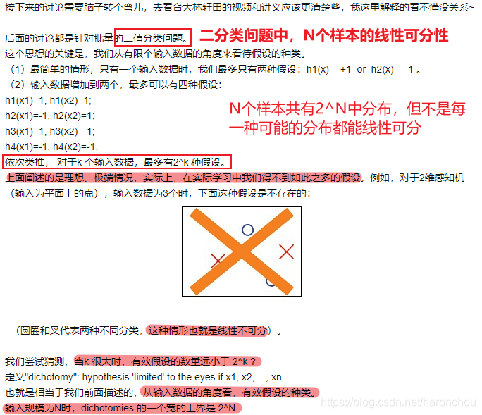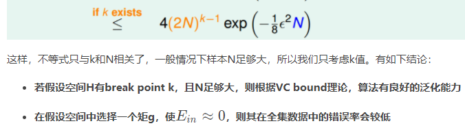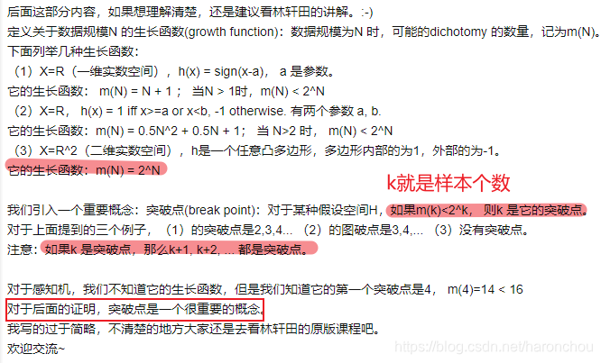 1. VC维的定义:假设空间H有突破点k,且N足够大,那么算法就有很好的泛化能力