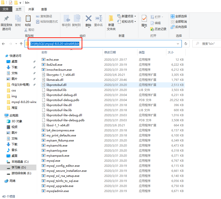 datadir=D:\\MySQL\\mysql-8.0.20-winx64\\data # 此处同上