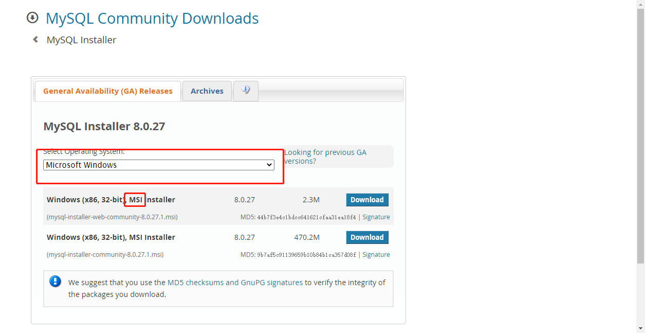这面罗列了不同版本的MySQL,这里我们下载MySQL install for windows。