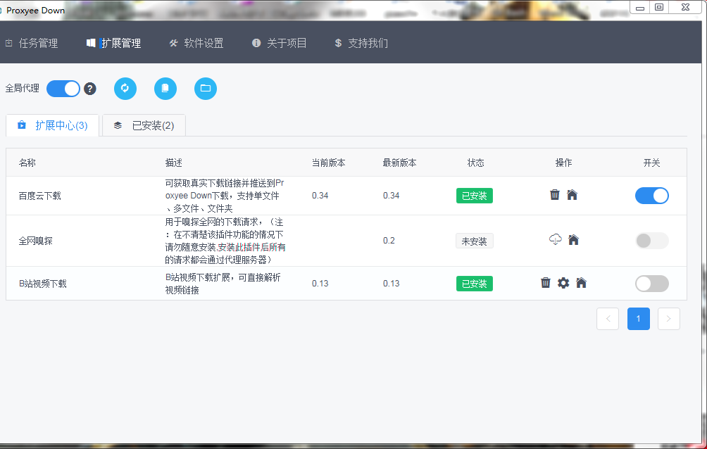 然后再扩展管理中安装下载百度云下载插件
