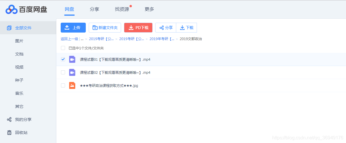 然后我们用浏览器打开百度云,就可以看到会多出一个PD下载,选好要下载的东西,然后点击PD下载,就可以下载资源了,完全不限速!!!
