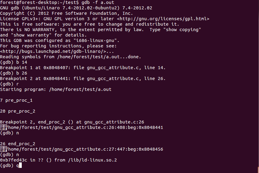 运行$gcc –Wall –c attribute.c attribute后,输出结果为:
