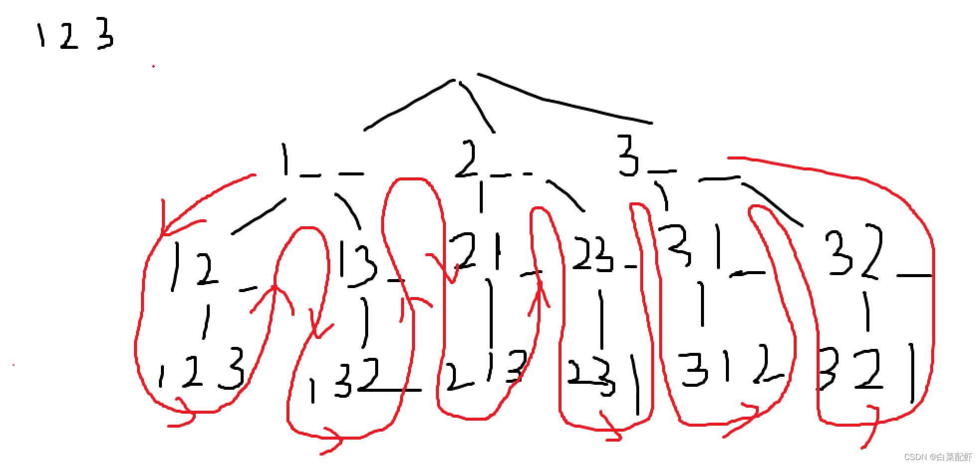 这道题就是问1 2 3所有排序;画图就是先在第一个位置填1,再在第二位置,第三个位置以次填2,3;然后你发现没数字可以填了,就可以回去一次1 2 3 - > 1 2 _,然后发现还是只能填3,就在回去一次 1 2 _ -> 1 _ _,然后可以填3;这就是回溯,这个代码我也整出来吧,可以和八皇后一起看一下: