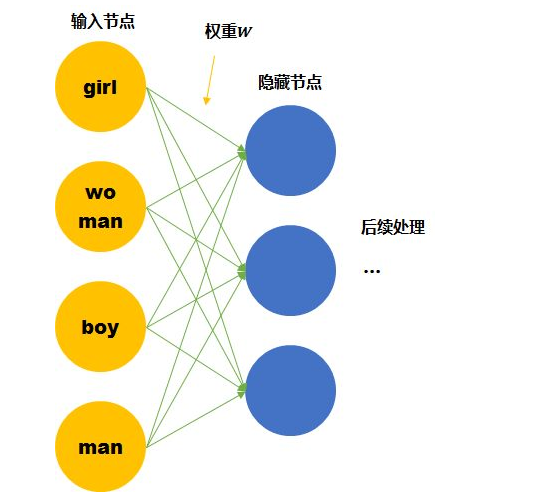 假设,我们现在只有4个词汇,girl, woman, boy, man。