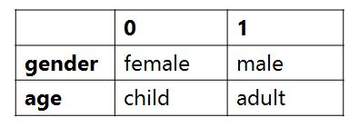 此时我们可以用两个结点表示四个单词,每个节点取不同值意义如上表。那么此时,girl就可以表示为[0,1],而man则可以表示为[1,1]。(第一个维度是gender,第二个维度为age)