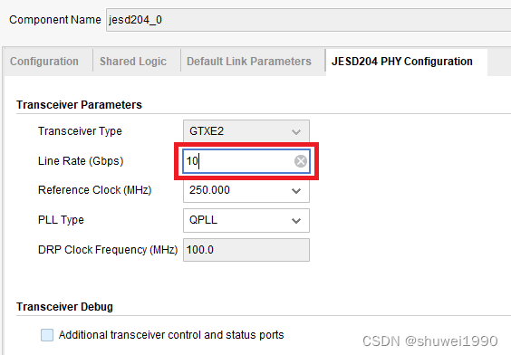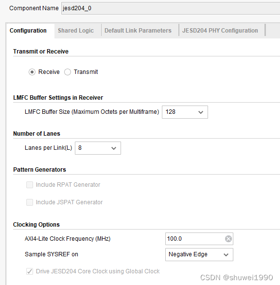 Vivado里JESD204B IP的配置选项比较少,很简单。