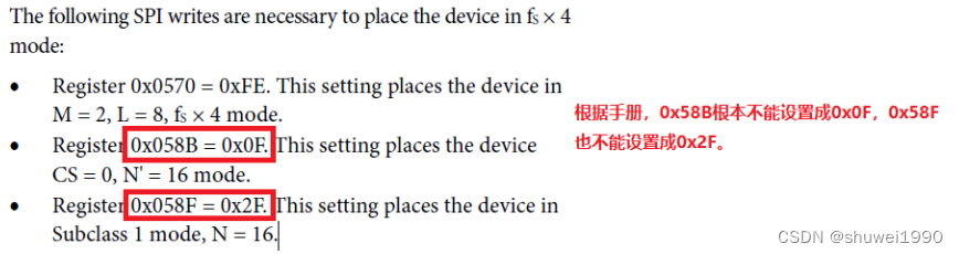 另外,手册上存在一些描述性错误,如下图所示,按以下配置即可0x58B=0x87, 0x58F=0x0F。