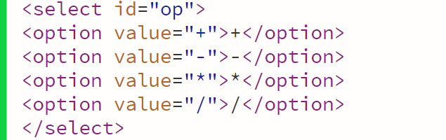 - 在其中再添加四个“option”标签,并且“option”标签放入“+”,“-”,“*”,“/”四个运算符号