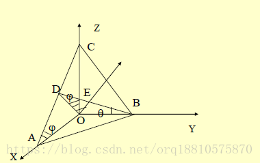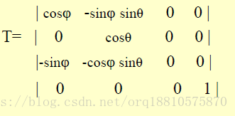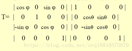 首先,先把物体及投影面沿着y轴顺时针旋转,在绕x轴逆时针旋转θ角,使投影面与z轴重合,变换矩阵如下:
