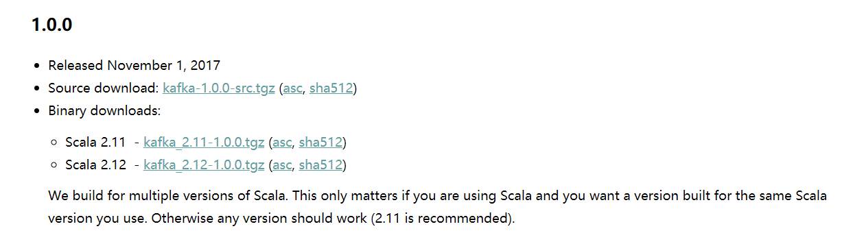 kafka对外发布第一个版本的时候版本号就不是从1.0x开始的
