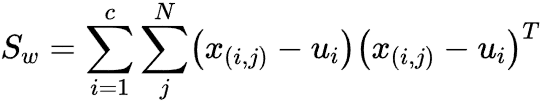 样本的类间散度矩阵Sb和类内散度矩阵Sw分别定义为: