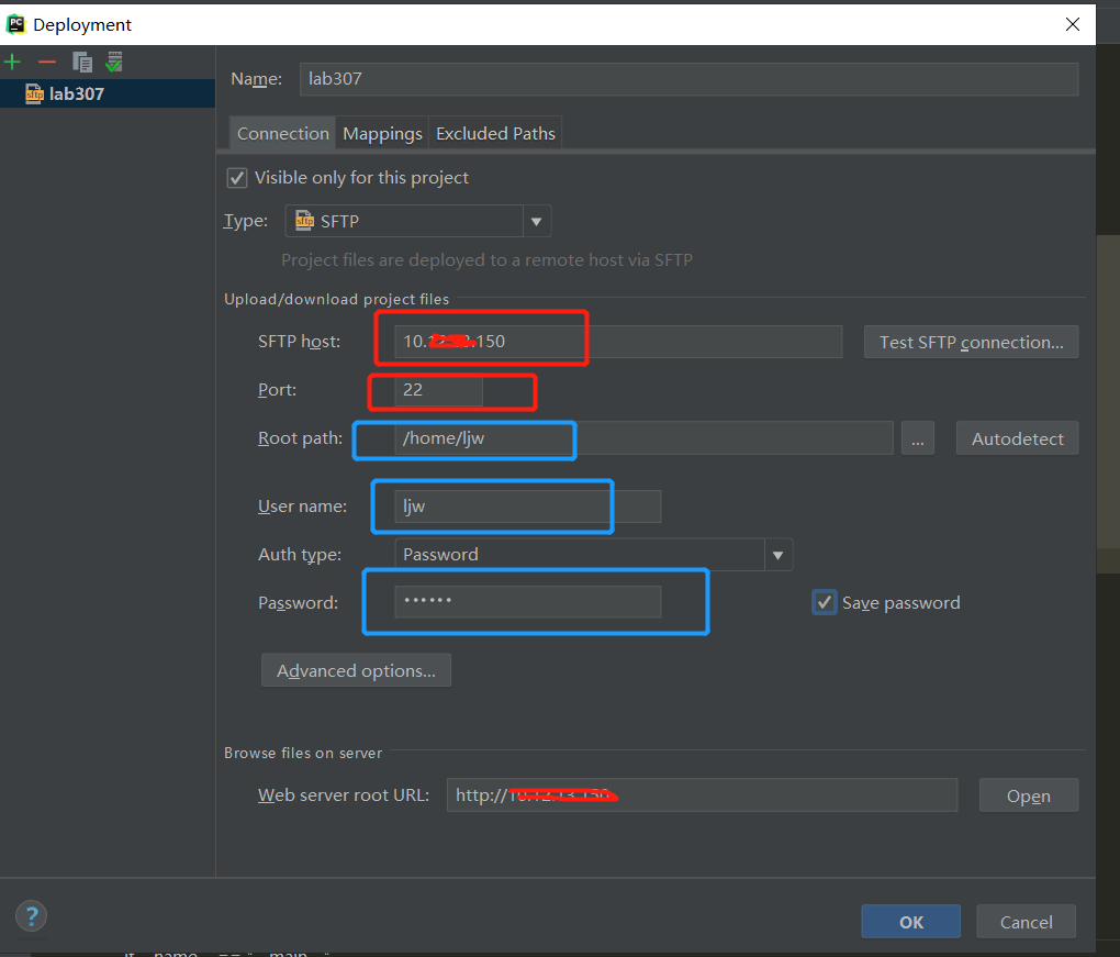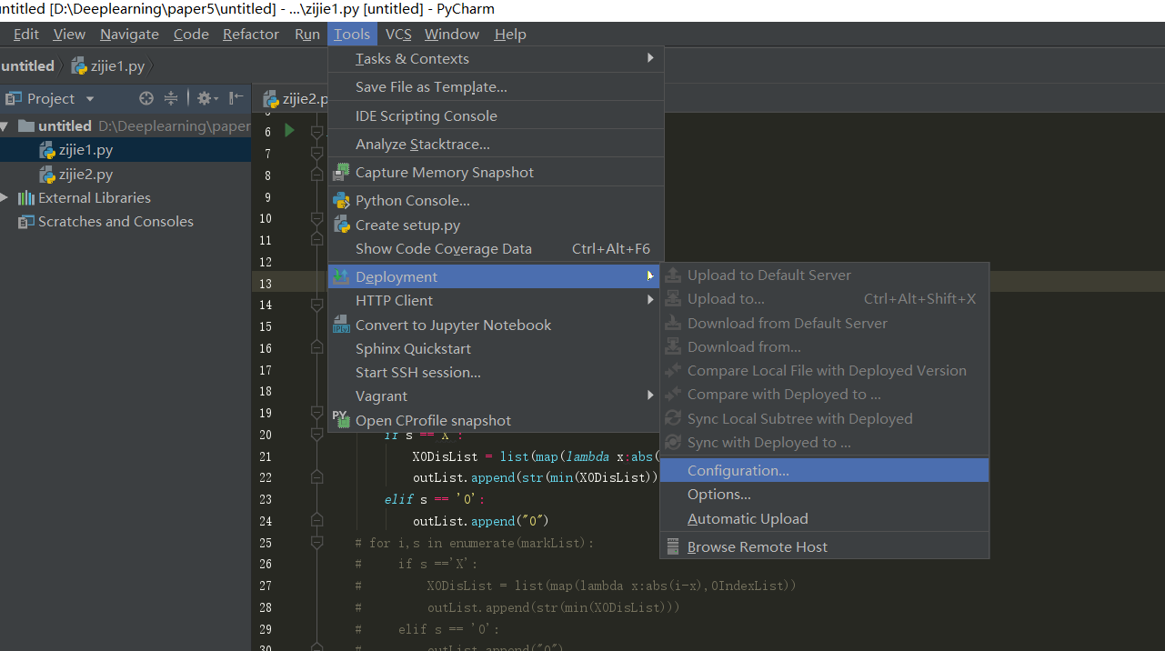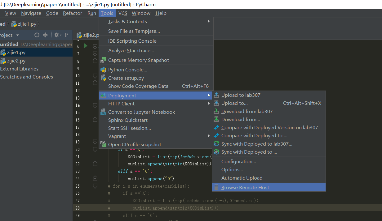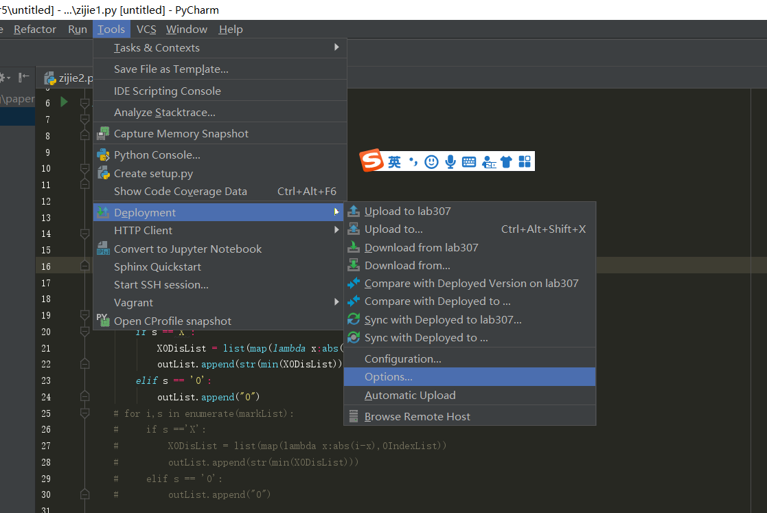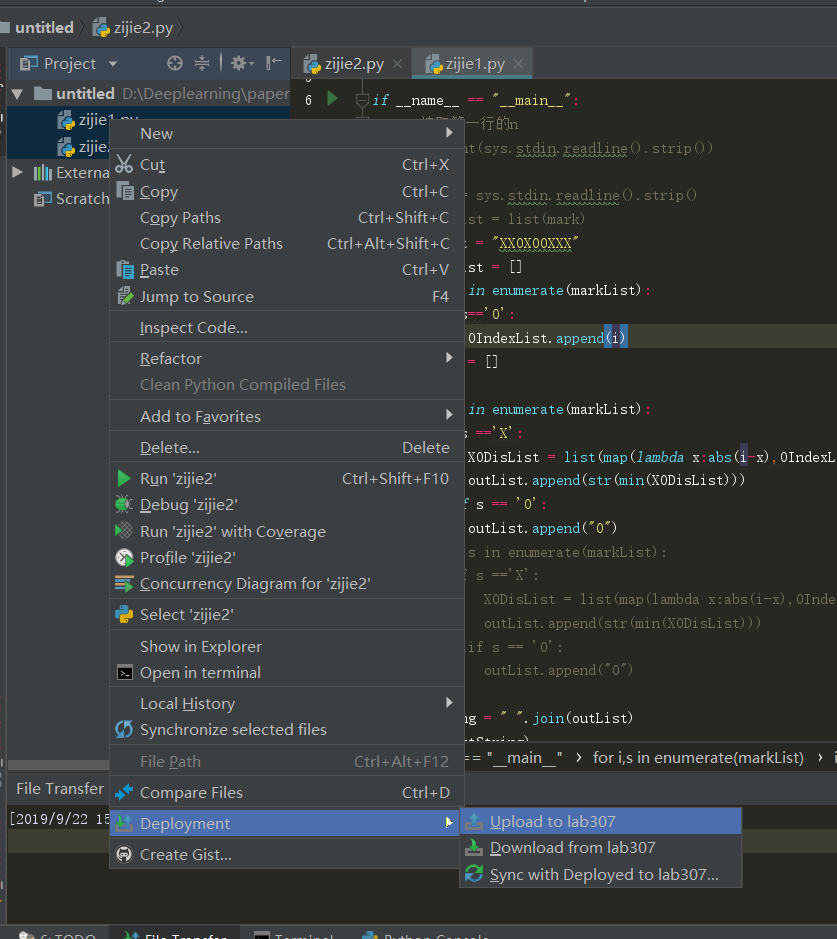 将测试代码上传至远程服务器(Tooles -> Deployment -> Upload to ××)。