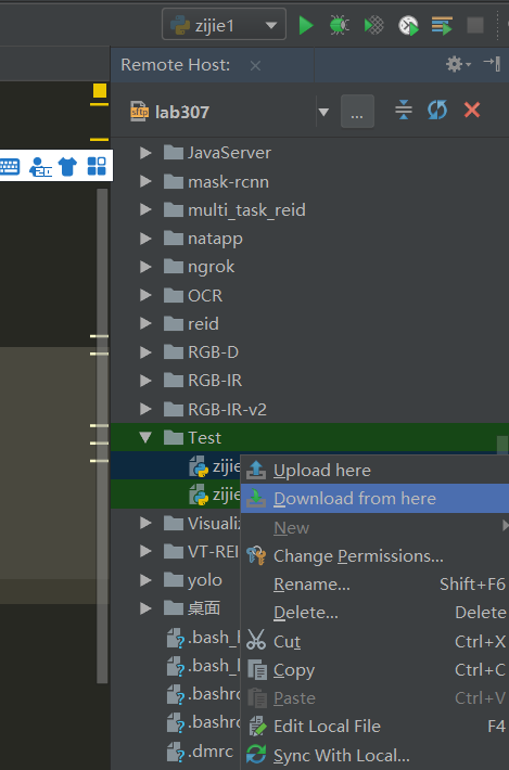 在右侧栏(服务器)选中需要下载的文件,右键->downloadfromhere