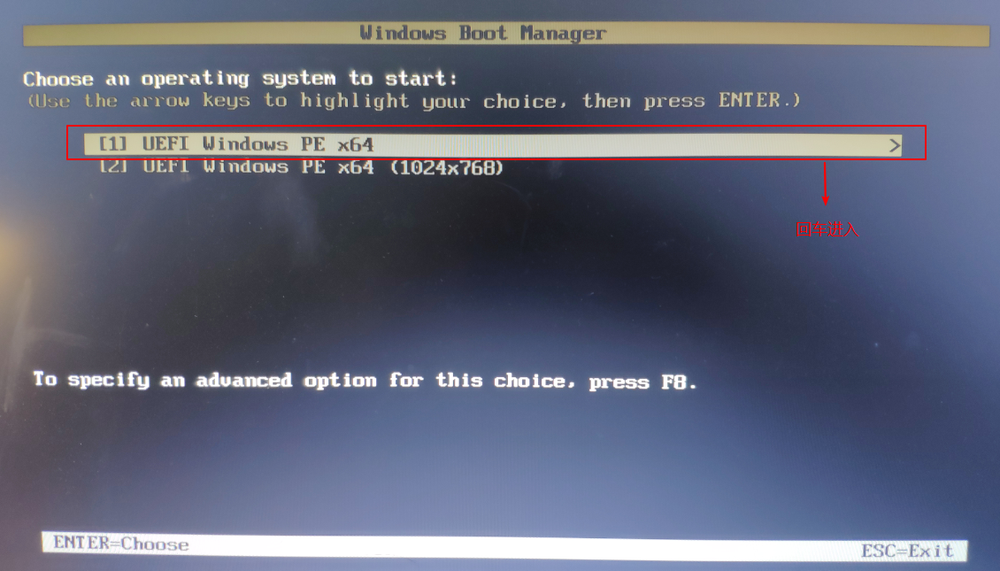 3、如下图选择后,回车,待加载完后进入微PE启动界面。(注:在下图界面中按ESC键可退出U盘启动)