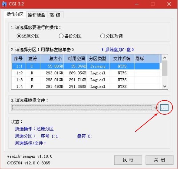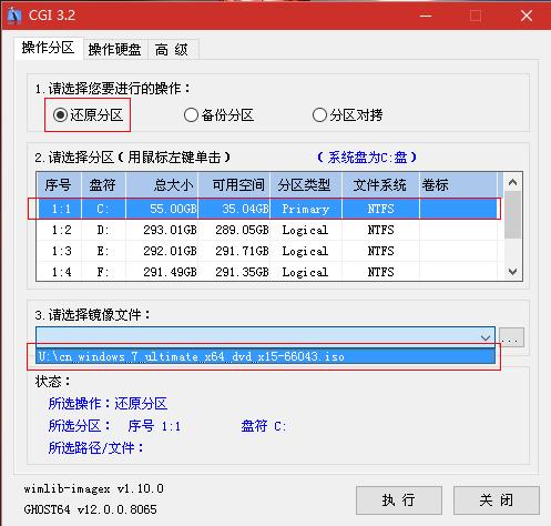 5、依次选择安装盘(一般为C盘)和系统镜像文件(通常系统镜像文件会被自动识别出,点击下拉选择即可)