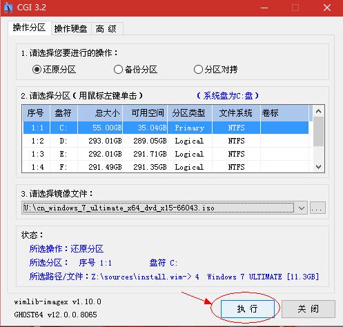6、待系统镜像解压完后,在弹出层中选择Windows 7 ULTIMATE (win7旗舰版),然后点击“确定”。
