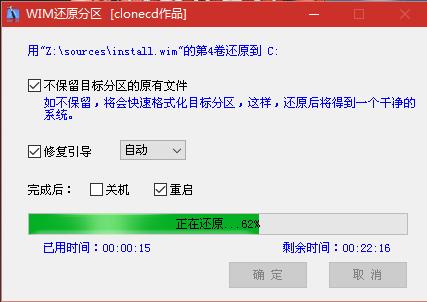 9、等待系统还原,还原完成后即可拔掉U盘。