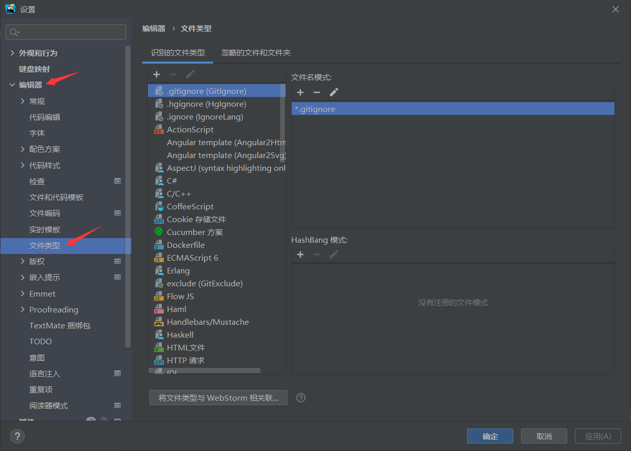 注意默认情况下,webstorm不支持wxml和wxss的文件类型,当然也不会有语法高亮!所以需要手动去配置。
