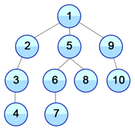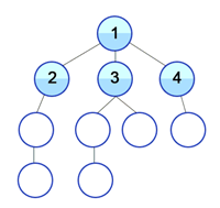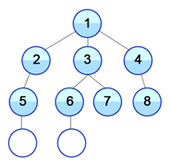 图1至4展示了在一张图中依据广度优先算法得到的遍历顺序,可以很清楚地看见搜索顺序是逐层往下,将一个顶点的相邻顶点全部遍历完毕后再遍历这些顶点的全部相邻顶点,依次往下进行。