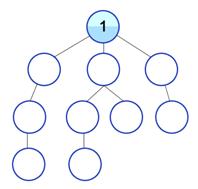 广度优先搜索是从图的一个顶点开始,向外一层一层地搜索,优先访问所有相邻顶点,直至图中所有顶点都被访问到为止的搜索方法,如下图所示: