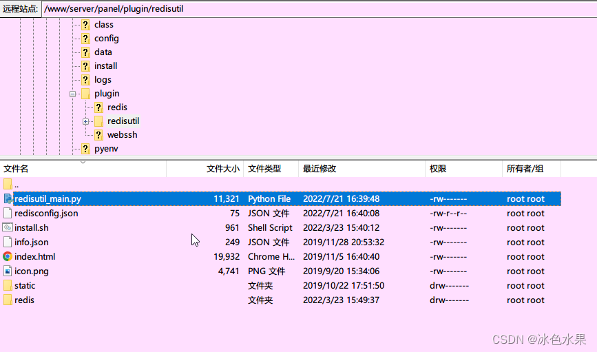 1. 进入 /www/server/panel/plugin/redisutil 目录中,找到 redisutil_main.py 文件,如下图