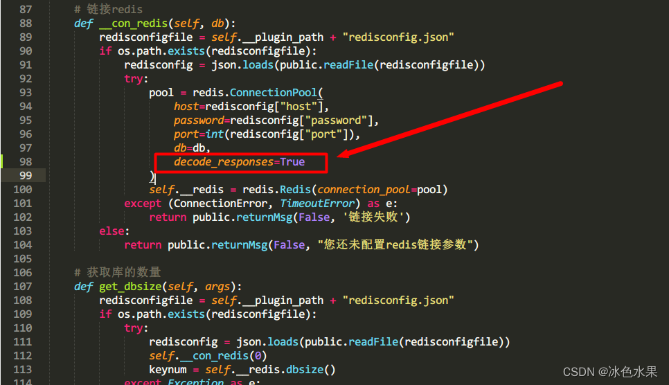 一. 第97行后面加一个参数 decode_responses=True 如下图