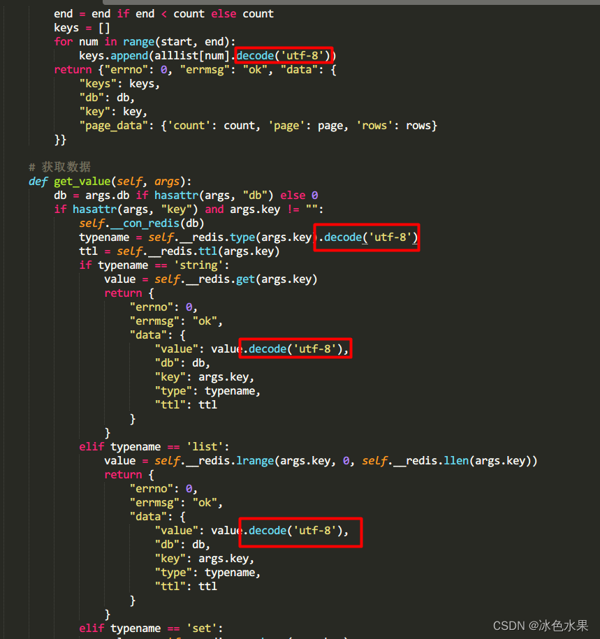 二.删除文件中所有的 .decode('utf-8'),一共有4个,如下图