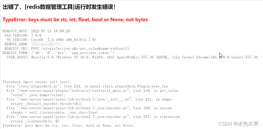 看报错信息: keys must be str, int, float, bool or None, not bytes