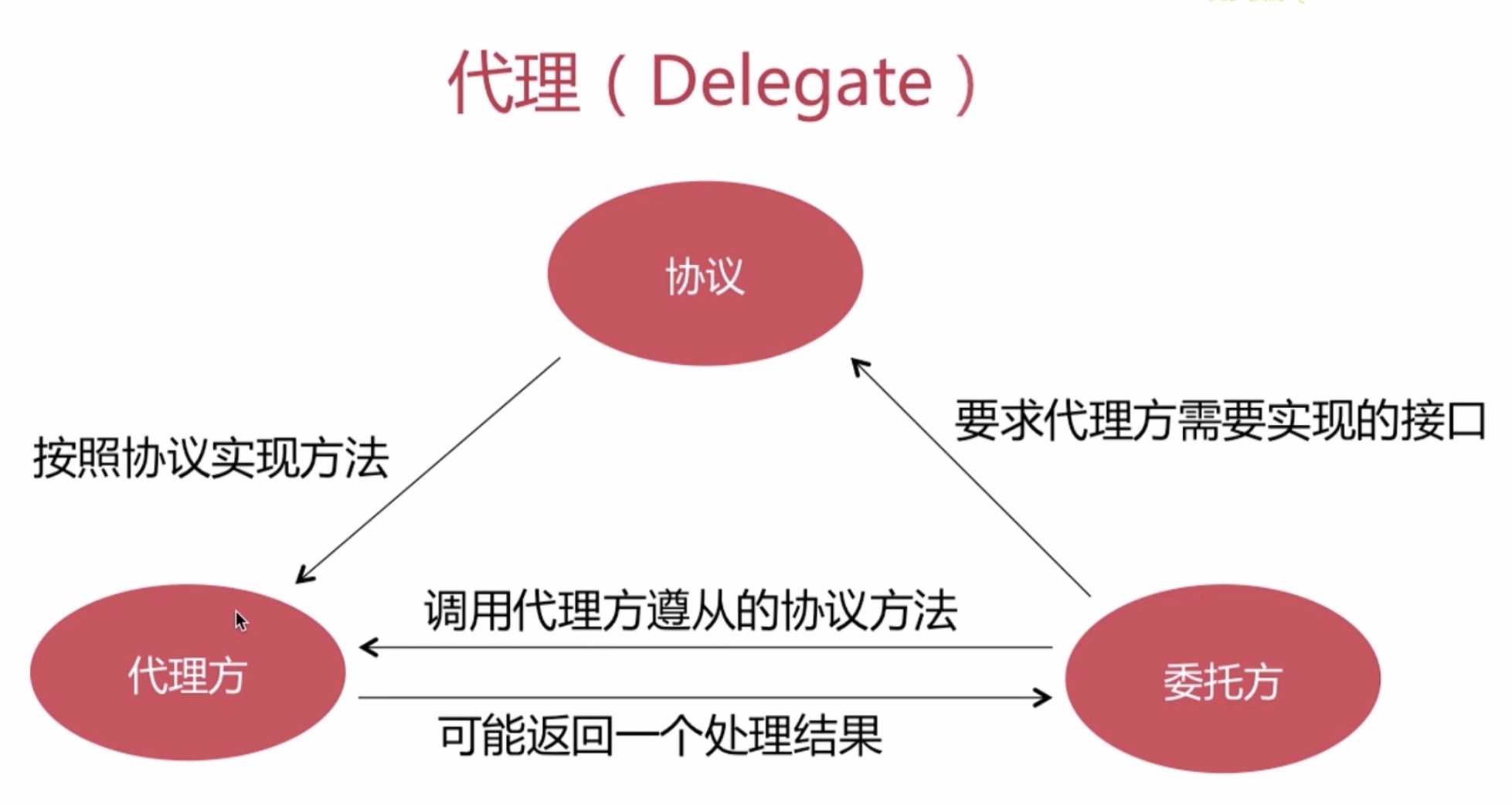 以protocol形式体现,用代理模式实现 一对一 weak规避循环引用