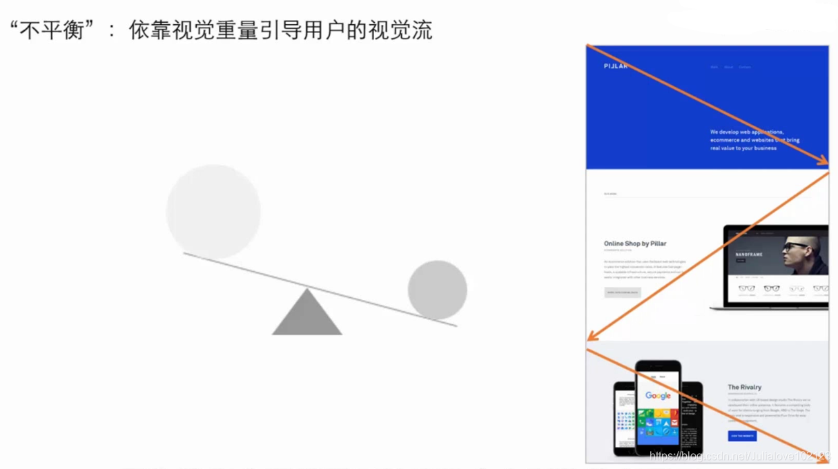 对称性:根据视觉元素重量的不同,来营造实现视觉平衡;(根据视觉的重量来引导用户)