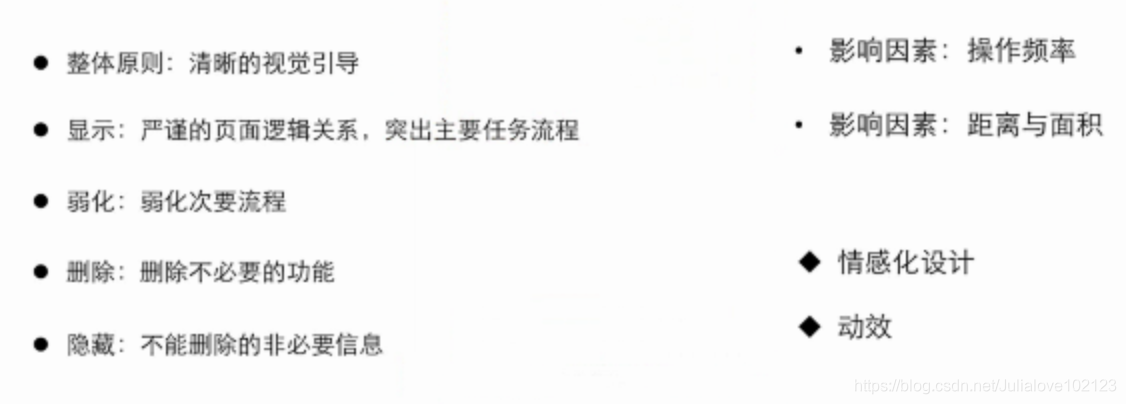 - 显示:清晰的页面逻辑关系,突出主要任务流程(格式塔里面关于逻辑关系的应用--点线面)。5分钟了解格式塔原则