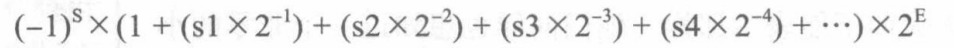 其中,尾数代表一个0和1之间的数,E指明了指数字段的值。如果从左到右将尾数各位标记为s1,s2,s3,...,则数的值为: