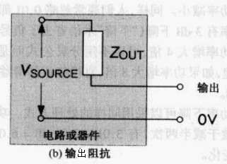 而输出阻抗Zout是由设备输出端看过去的阻抗。任意电阻或设备的输出可以等效为一个输出阻抗Zout与一个理想电压源Vsource的串联。