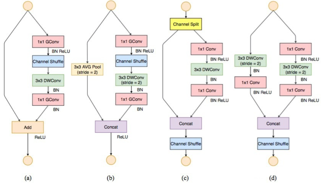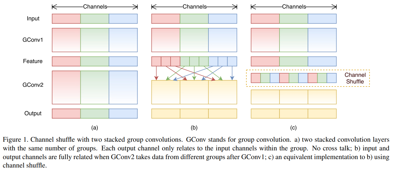 在第一个 1*1 卷积之后添加一个Channel Shuffle操作。