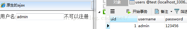 1、我们先用基本的ajax实现验证用户名是否存在的例子(此例子只对IE浏览器),