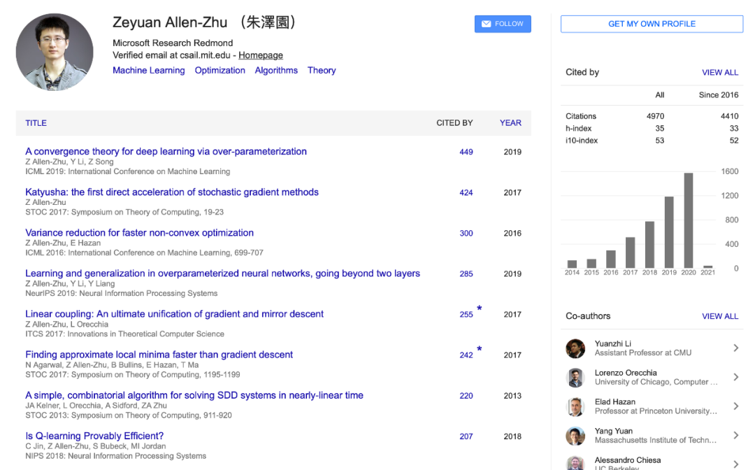 朱泽园博士目前就职于微软总部 AI 研究院。南京外国语毕业,高一保送清华;2005、2006两年蝉联IOI金牌,2009年ACM总决赛亚军;清华毕业后在MIT读完硕博,后在普林斯顿进修博士后。