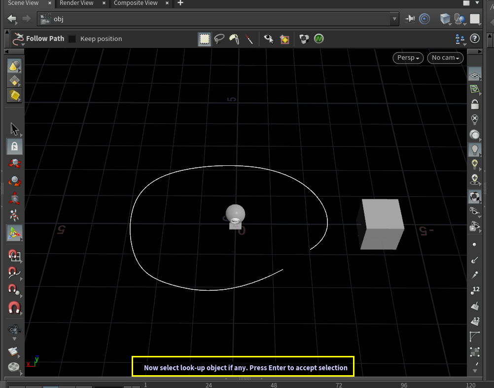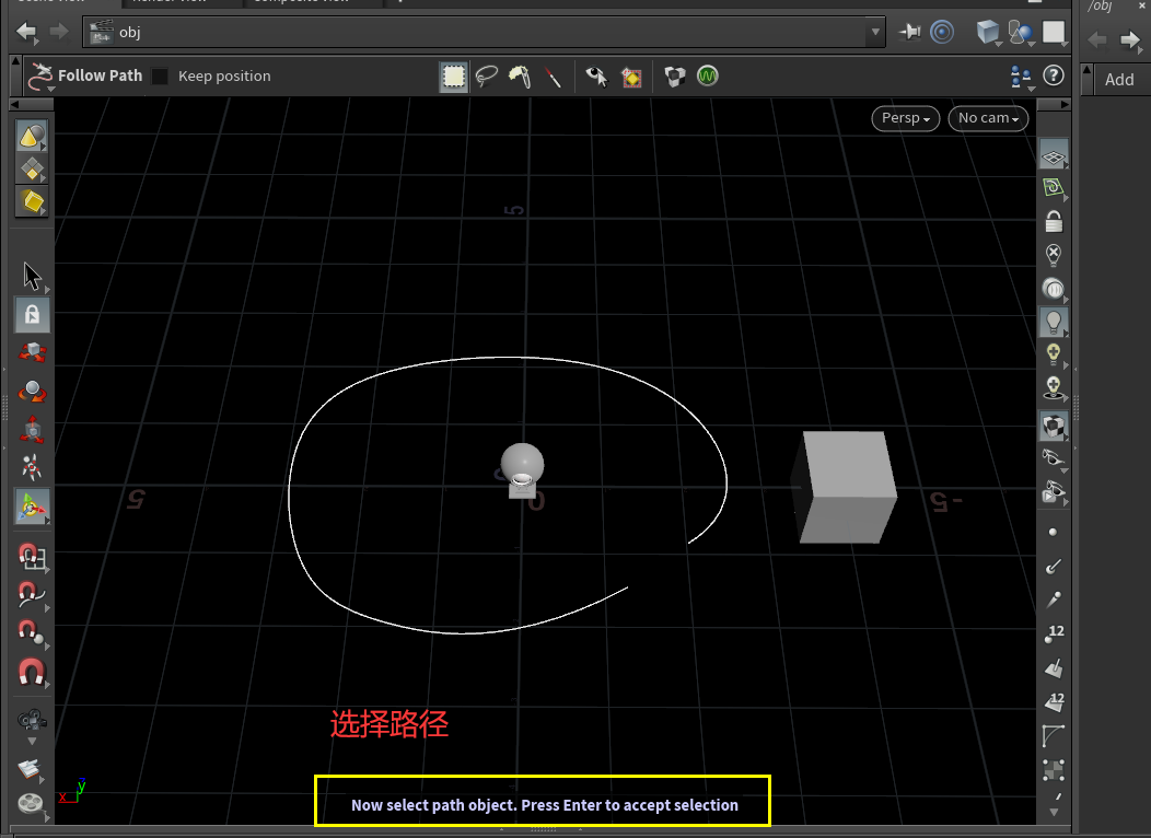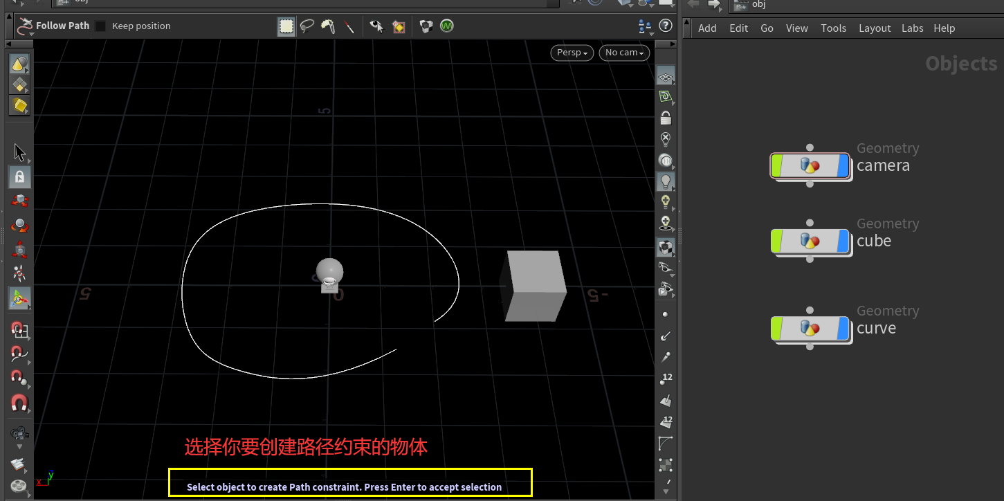 steep2:根据提示选择“要在路径上运动的物体”,选中之后回车