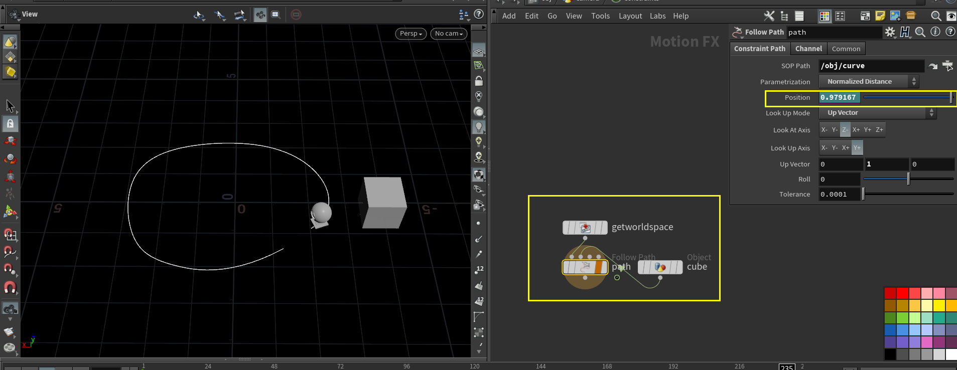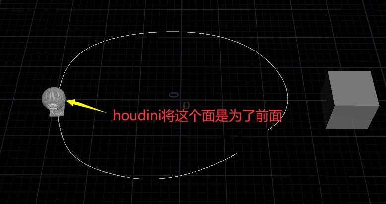 打个比方在轨道上运动的物体是个正方形,你想要他一直面朝一个物体运动。但是因为它四面长得一模一样,houdini分不清到底那面是所谓的“正面”,于是经过上面的步骤,朝向的面有可能不是你想要的那一面。 比如下图