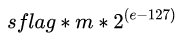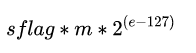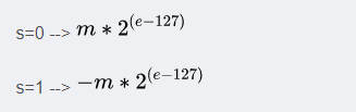 3) m 为尾数值,占用空间为23位,但是根据 e 的取值,有 24 位精度。所以引入了一个附加位,规则如下: m的值会根据e的值会动态变化。 当8个指数位e全部为0,尾数位m附加0(在左边附加),否则,附加1.