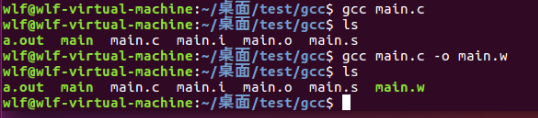 如果不给-o,系统会默认生成可执行文件a.out,如果想自定义最终生成的可执行文件的文件名,可以通 过-o: gcc main.c -o main