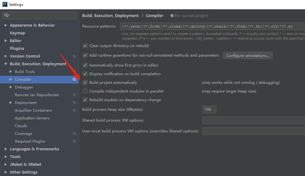 1、打开idea的自动编译功能:settings-》build-》compiler-》Build project automatically